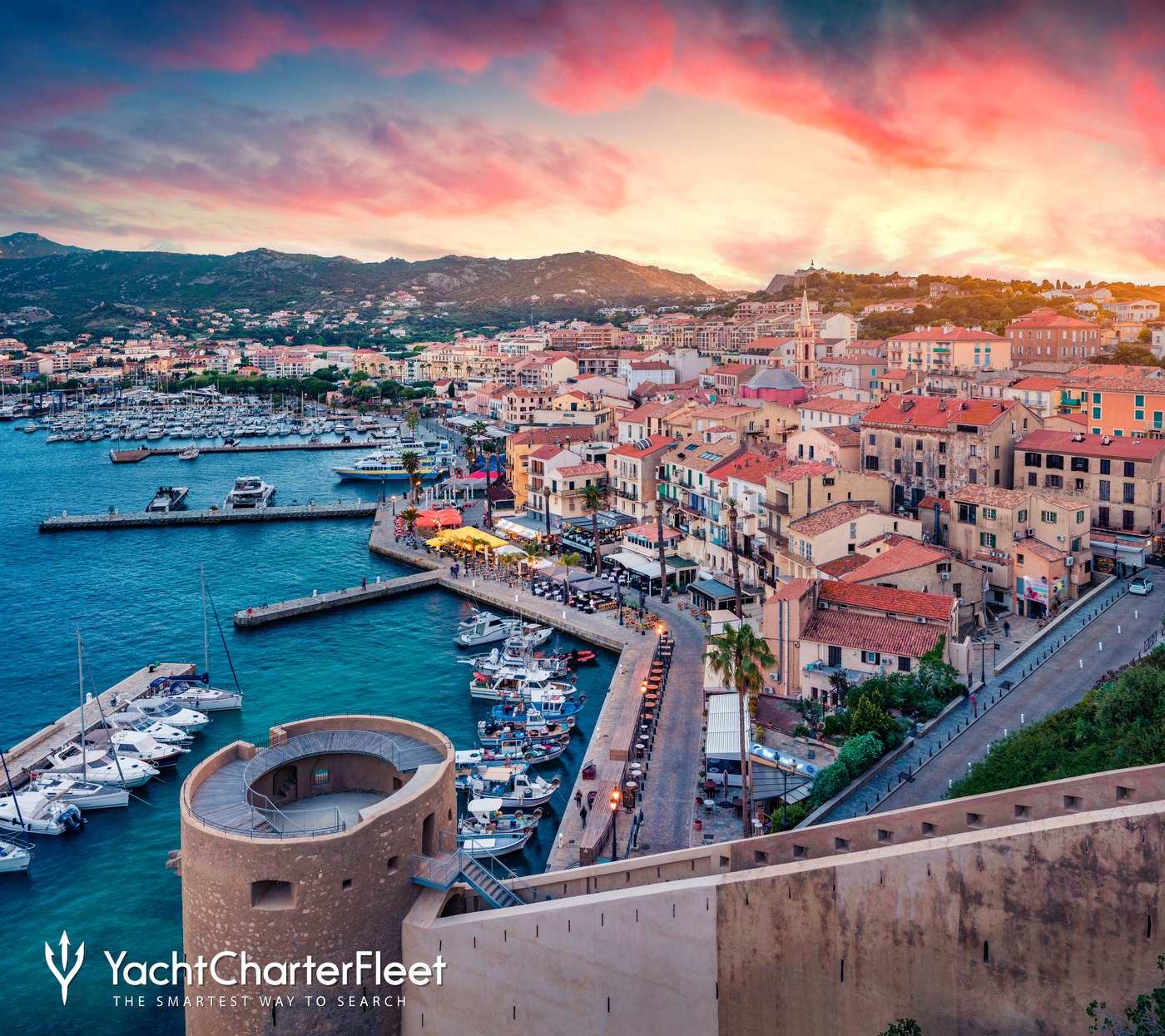 Many yacht charters begin at Port Ajaccio Tino Rossi in the Corsican capital of Ajaccio which is located on the island's west coast. The city is located in one of the most beautiful bays in the world, surrounded on three sides by mountains that protect it and make it an excellent destination for private yacht charters.