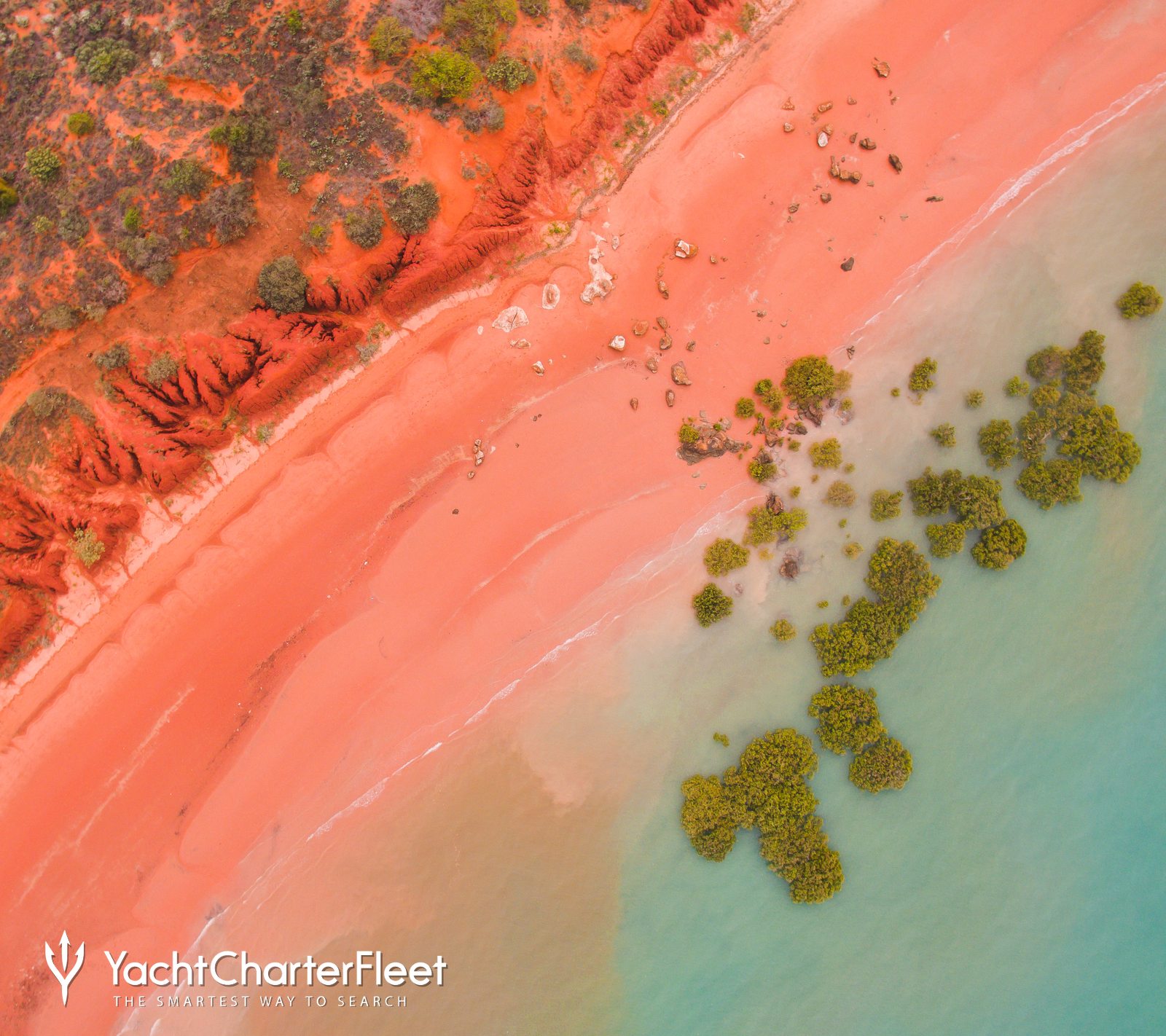 The Kimberley retains a certain mystique that seduces the adventurous yacht charterer year after year, as a region where the Outback invitingly melds with the coast. As an undulating rhythm of lush jade greens, softly glowing auburns and ochres tumble into a whirl of pink sands and mint-colored seas, The Kimberley beguiles the senses. Feel everyday life slowly slip away like the dreamy sunsets that will come to define your charter here following a day spent bronzing on Cable Beach, the coral-hued, mangrove-fringed Roebuck Bay, or cleansing in the lagoons of Mitchell Falls.